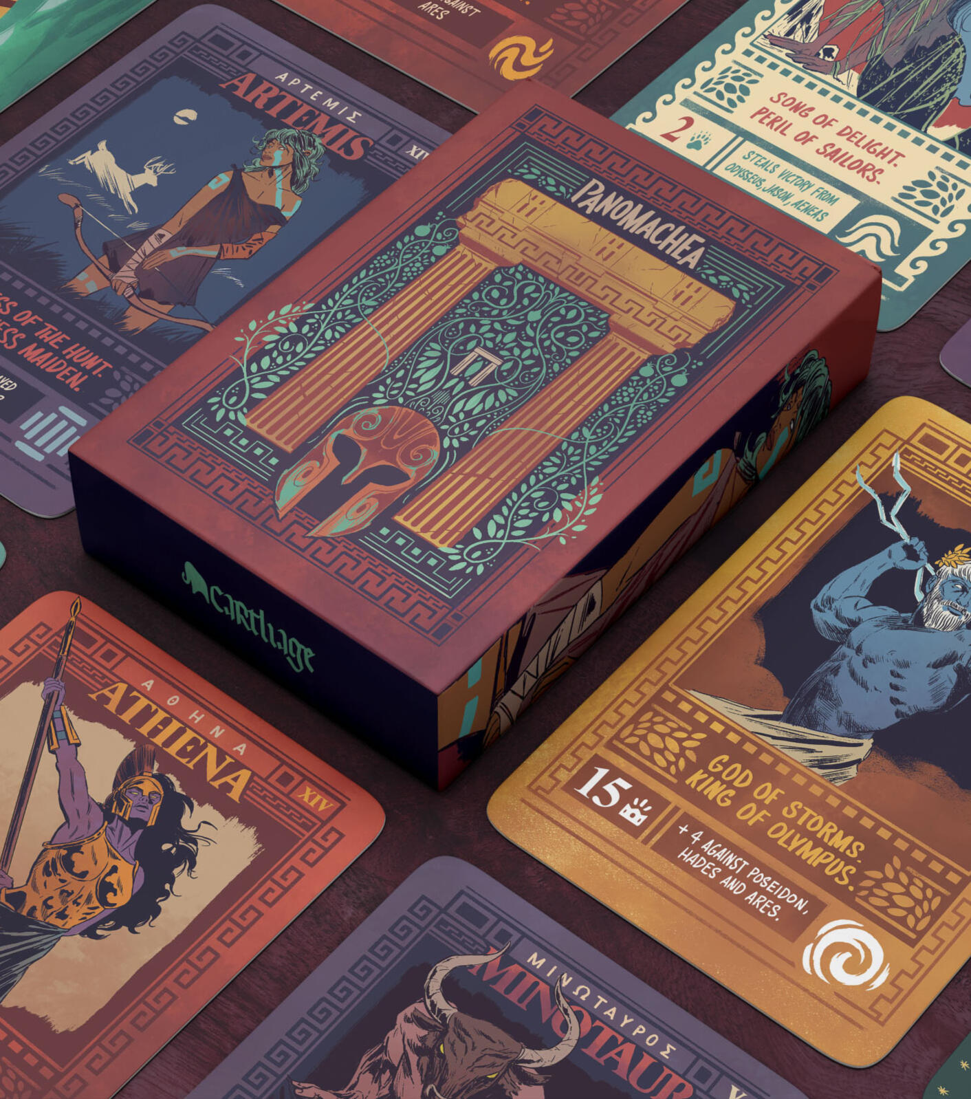 My card game, Panomachea is a full on mythological battle game. Hit the button below to learn about it.